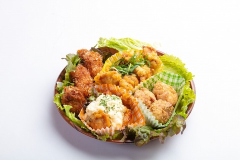 チキン南蛮(6個)、かつおとり天(3個)、ねぎポン酢(6個)、ゆず香味唐揚げ(3個)